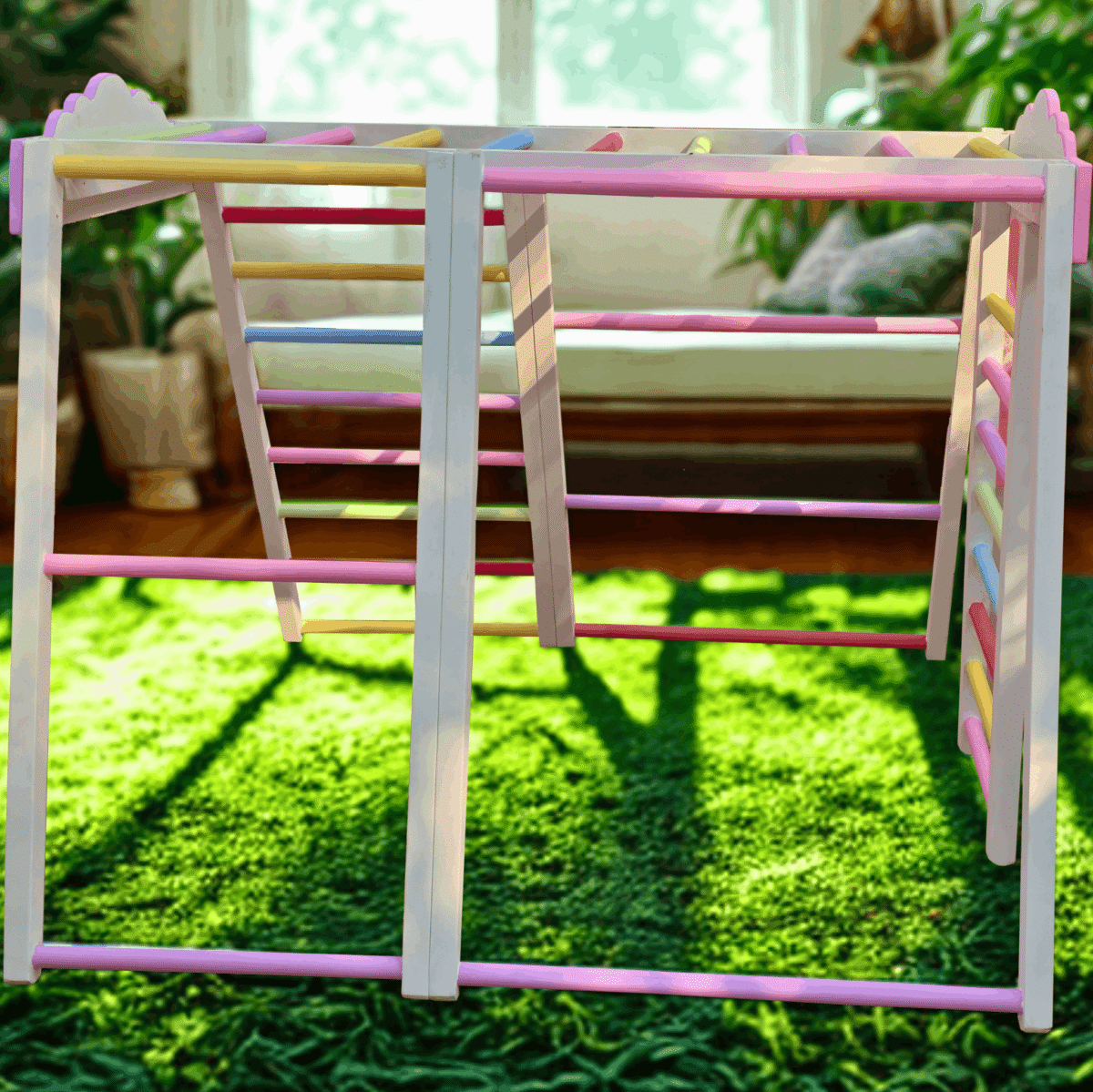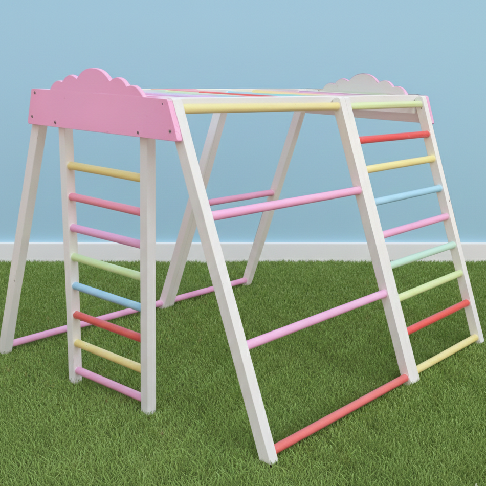 Bring fun, fitness, and confidence into your child’s daily routine with the Forest Fun Jungle Gym, a sturdy wooden climbing frame specially designed to encourage active play while developing strength, balance, coordination, and overall motor skills in children aged 2 to 10 years. Crafted from high-quality durable wood with a smooth, child-safe finish, this multi-activity structure includes ladders and climbing bars that promote full-body exercise and adventurous play. Its bright pastel colors create a cheerful and engaging environment, making it perfect for indoor playrooms or covered outdoor spaces. Built with a strong and stable frame, it safely supports energetic movement and multiple children at once. Designed to grow with your child, it encourages healthy physical activity while reducing screen time through interactive and imaginative play.