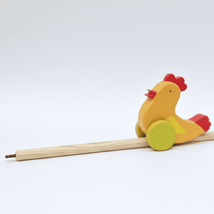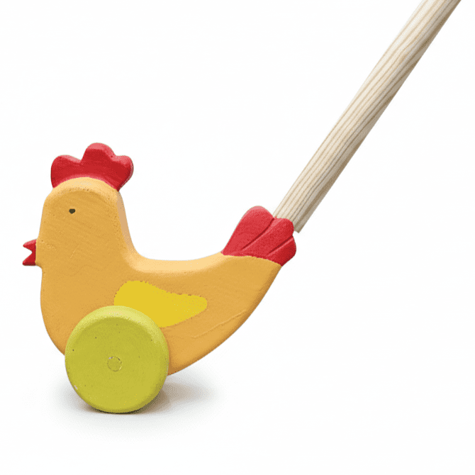 Wooden Little Hen Bring joy to your child’s playtime with this charming wooden chicken push toy. Designed with bright colors and a smooth finish, this adorable walker encourages little ones to stay active while developing balance and coordination. As the toy rolls forward, the sturdy wheels glide easily across most surfaces, making it perfect for indoor play.